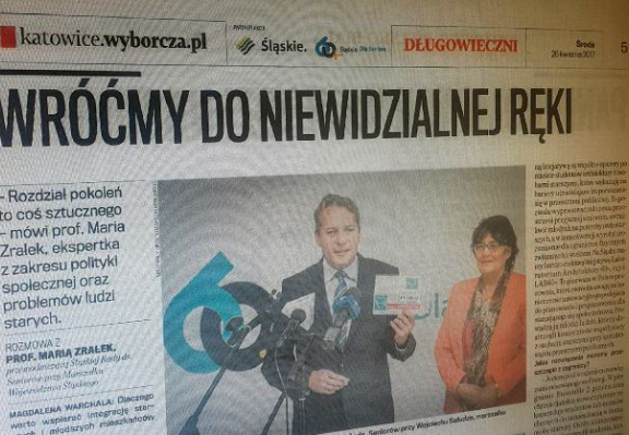 Polecamy Państwa uwadze dzisiejszy numer Gazety Wyborczej, w którym znajdziecie wywiad z prof. WSH dr Marią Zrałek, dziekan Wydziału Nauk Humanistycznych oraz Wydziału Administracji i Zarządzania WSH, ekspertką z zakresu polityki społecznej i problemów osób starszych. O integrację międzypokoleniową panią profesor pytała redaktor Magdalena Warchala. Tekst całego wywiadu dostępny jest TUTAJ.