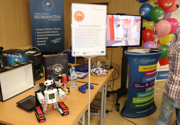 Podczas Europejskiego Tygodnia Kodowania Code Week 2018 jako jedyna uczelnia wyższa pokazalismy jak działa technologia VR - Virtual Reality, oraz jak użyć jej do uczenia dzieci kreatywności. Oprócz tego nasi goście budowali interaktywne roboty i bawili się na macie edukacyjnej!
