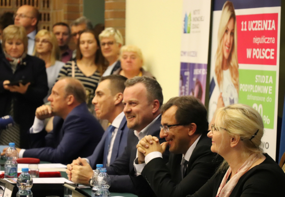 Na wydarzenie tłumnie przybyli mieszkańcy Sosnowca, a osoby, którym brakło miejsc na auli mogły obserwować transmisję on-line w sali wykładowej obok. Debatę poprowadził dr Krystian Dudek, pełnomocnik Kanclerza Wyższej Szkoły Humanitas ds. Public Relations, ekspert z zakresu marketingu politycznego. Z kolei spotkanie otworzył JM Rektor Wyższej Szkoły Humanitas dr hab. prof. WSH Michał Kaczmarczyk.