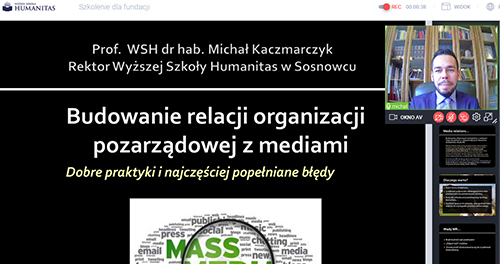 To właśnie telefon z Wyższej Szkoły Humanitas do Fundacji Dom zaprowadził nas do dnia dzisiejszego. Kilkanaście osób zaangażowanych w działania organizacji miało dziś okazję wziąć udział w szkoleniu z marketingu relacyjnego i kreowania wizerunku, które poprowadził rektor. Szkolenie miało charakter praktyczny, a głównym obszarem zainteresowania były media relations.
