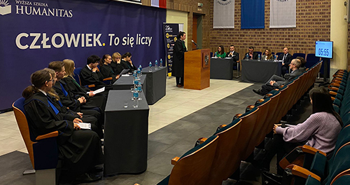We wtorek, 7 marca 2023 r. rozpoczęła się 5.edycja wojewódzkiego konkursu pod nazwą „Potyczki prawne”. W auli Wyższej Szkoły Humanitas w Sosnowcu rozegrano jego ćwierćfinał, a stawką było wejście do półfinału.