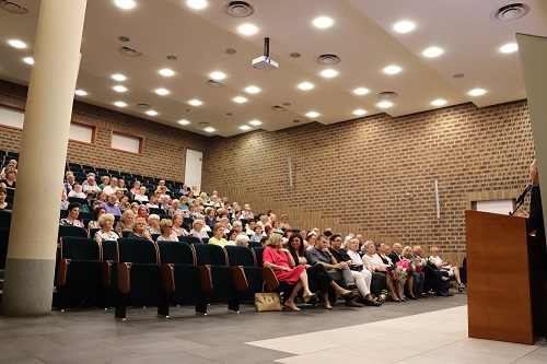 Przewodnicząca Rady Miejskiej Ewa Szota, również pogratulowała seniorom zaliczenia wszystkich egzaminów i ukończenia kolejnego semestru w UTW: - Ja również niebawem będę absolwentką Akademii Humanitas jak państwo. W tym roku kończę w murach tej uczelni studia MBA dla liderów samorządu. I to mnie niezwykle cieszy, że razem jesteśmy akademicką rodziną.