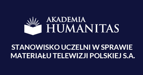 w związku z emisją w dniu 7 grudnia br. materiału Telewizji Polskiej, pragnę zaznaczyć, że Akademia Humanitas nie ma żadnego związku z przedstawioną w reportażu spółką Quality Institute. Jednakże, z uwagi na fakt, że niektóre fragmenty przedstawionego materiału dotyczą naszej Uczelni i naruszają jej dobra osobiste informuję, że z uwagi na skalę manipulacji zawartych w reportażu, liczbę nieprawdziwych informacji w nim podanych oraz wielość działań naruszających renomę Akademii Humanitas w trybie pilnym zleciłem kancelarii reprezentującej Uczelnię wystąpienie na drogę sądową przeciwko Telewizji Polskiej S.A., autorowi reportażu oraz redaktor naczelnej programu, w którym audycja została wyemitowana. W ciągu miesiąca od dnia emisji materiału wystąpimy do Sądu Okręgowego w Warszawie z roszczeniem o ochronę dóbr osobistych i zadośćuczynienie finansowe na wybrany cel społeczny.