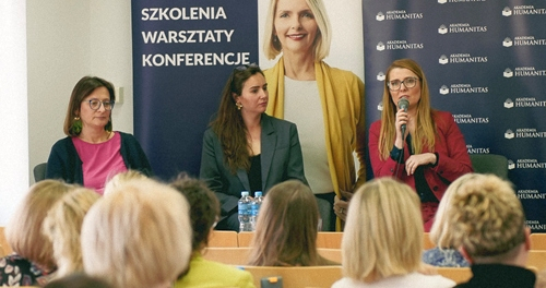 W imieniu Ośrodka Doskonalenia Nauczycieli Akademii Humanitas, przybyłych przywitała dziekan Wydziału Nauk Stosowanych – Ewa Kraus: Stawiamy na kształcenie, na pomoc w rozwiązywaniu problemów z jakimi spotykacie się Państwo w swoich szkołach. Rozmawiamy o problemach na linii nauczyciel – uczeń, nauczyciel – rodzic ucznia. Tworzymy różne schematy i pomoce w radzeniu sobie w sytuacjach krytycznych. Teraz porozmawiamy i poznamy sposoby radzenia sobie ze stresem, przemęczeniem. I mam nadzieję, że razem zadbamy o nasz własny dobrostan. O nas samych. O naszą odporność psychiczną, która odgrywa kluczową rolę w byciu liderem.