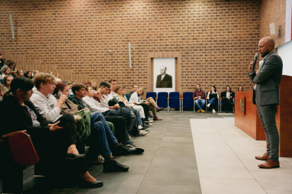 Aby nauczyć się zapobiegać przestępstwom w sieci zaprosiliśmy na uczelnię przedstawicieli naszego partnera – Banku PKO BP SA, którzy zdradzili nam jak czuć się bezpiecznym w wirtualnej rzeczywistości. Wykład pt. Człowiek w centrum uwagi cyberprzestępców, prowadzony przez Łukasza Rinkowskiego, Kierownika Zespołu w Departamencie Bezpieczeństwa PKO Bank Polski SA, rzucał światło na ważność edukacji w zakresie cyberbezpieczeństwa.